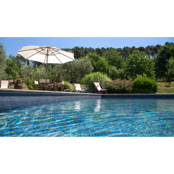 Boja je tamno siva, sto doprinosi fantasticnom izgledu bazena.