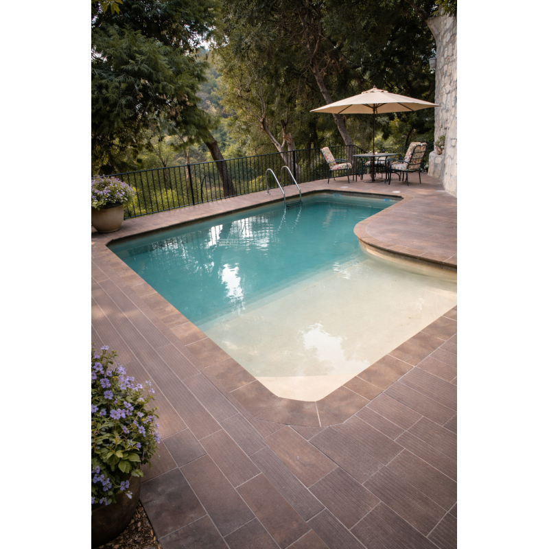 Dekor Terra stvara prirodan, zemljani ambijent bazena. Peskoviti tonovi reflektuju svetlost i daju bazenu opuštajući i luksuzan izgled, pogodan za dvorišta, vile i wellness objekte.