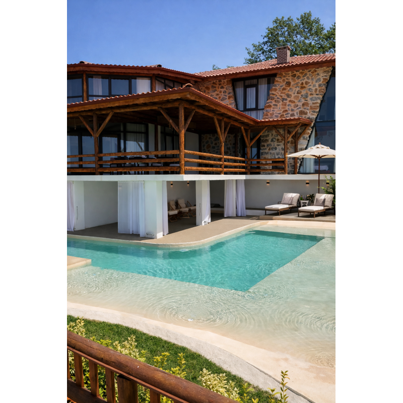 Dekor Terra sa peskovitim tonovima vodi daje prelepu tirkiznu nijansu, stvarajući osećaj prirodnog, mirnog okruženja bazena (ton zavisi od svetlosti i okoline).