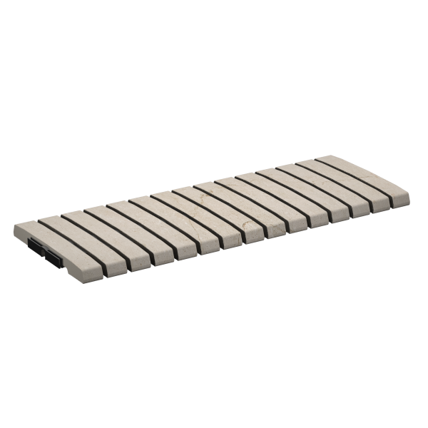 Ova otvorena rešetka izrađena je od visokokvalitetne keramike, koja pruža odličnu otpornost na vlagu, hlor, UV zračenje i mehanička opterećenja. Njen dizajn sa precizno postavljenim prorezima omogućava brzo oticanje vode, dok protivklizna površina doprinosi sigurnosti korisnika. Namenjena je za upotrebu u privatnim, hotelskim i javnim bazenima sa prelivnim sistemima.