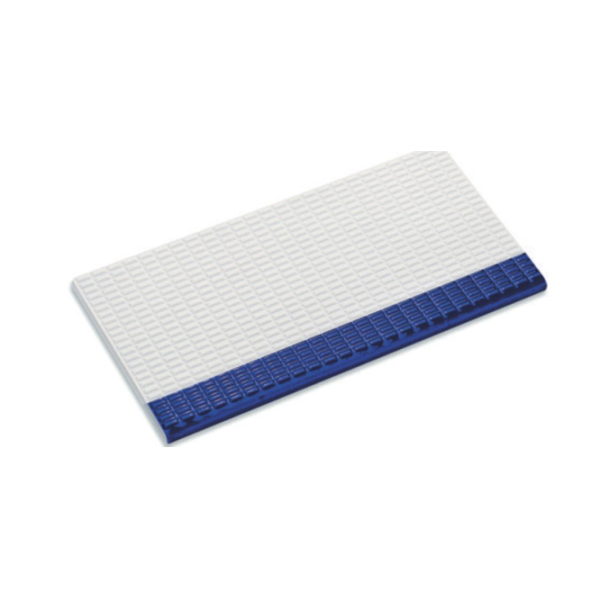Ova rubna pločica dimenzija 240×115 mm namenjena je za prelivne bazene, omogućavajući efikasno usmeravanje vode ka prelivnom kanalu. Dizajnirana je tako da povećava sigurnost korisnika bazena zahvaljujući protivkliznoj površini, čime se smanjuje rizik od nezgoda na mokrim površinama.