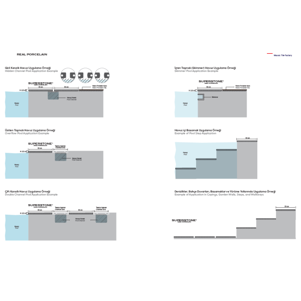 Površinska boja usklađena je sa savremenim arhitektonskim trendovima u Evropi, omogućavajući lako kombinovanje sa mozaicima i pločicama unutar bazena, kao i sa keramikom i pejzažnim elementima oko bazena.