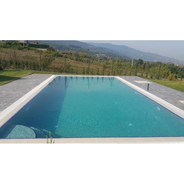 Protiv klizni mozaik : Ovaj model staklenog mozaika , takodje možete pronaći i u protiv kliznoj opciji za montažu na delovima bazena kao što su : rub bazena , klupe , stepenište .