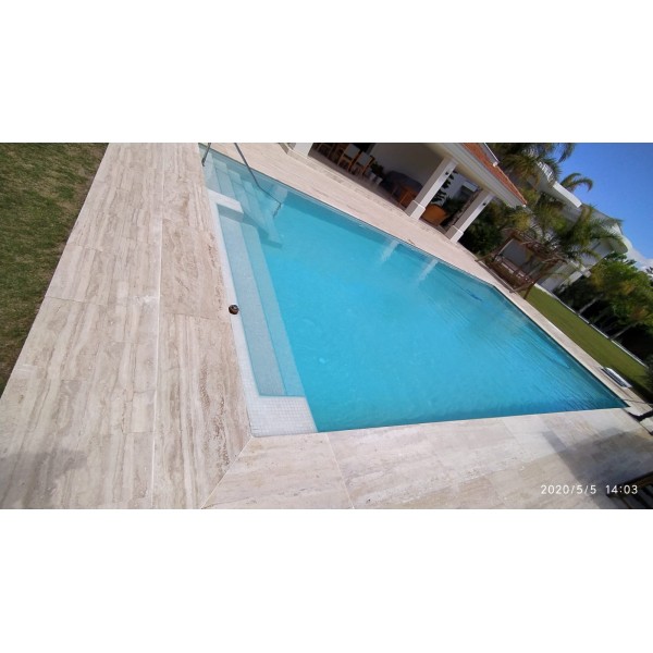 Protiv klizni mozaik : Ovaj model staklenog mozaika , takodje možete pronaći i u protiv kliznoj opciji za montažu na delovima bazena kao što su : rub bazena , klupe , stepenište .