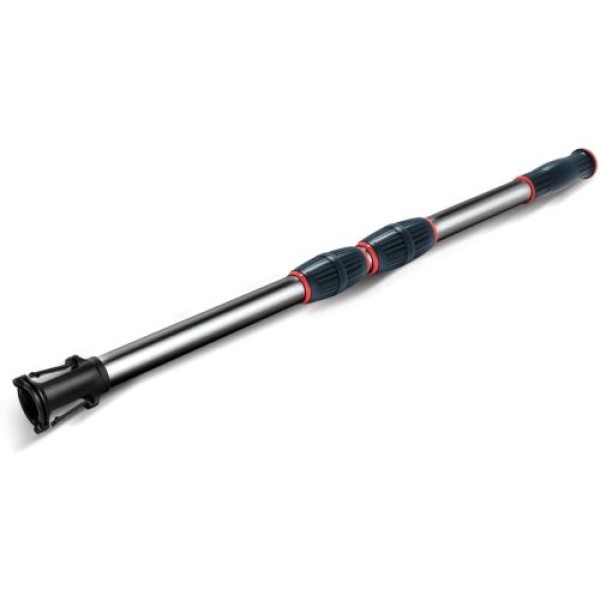 Ručka je dizajnirana u elegantnoj crveno-crnoj kombinaciji boja, dodajući stilski dodir rutini čišćenja bazena. Teleskopska funkcija omogućava lako skladištenje kada se ne koristi, što ga čini praktičnim rešenjem koje štedi prostor za održavanje bazena.