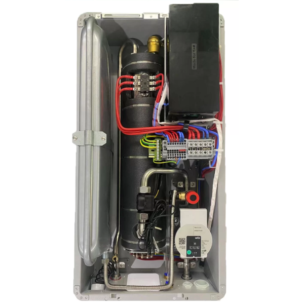 * mini kotlarnica - opremljen pumpom (frekventno regulisana smart pumpa), posudom, senzorom protoka, sigurnosnim komponentama - sve navedene komponente su EU proizvodnje.