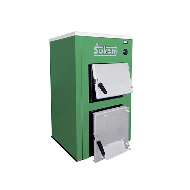 Kotlovi tipa Šukoplam TK raspona snage 25-50kW namenjeni su za sagorevanje čvrstog komadnog goriva (drvo, ugalj) koji se ručno ubacuje kroz prostrana zakošena gornja vrata na kotlu. Takođe donja vrata su opremljena otvorom za ugradnju gorionika na pelet, naftu ili gas. Ložište kotla je konstruisano od kotlovskog lima u kvalitetu P265GH debljine 5 i 4 mm i kotlovskih cevi u kvalitetu P235GH TC1 debljine 4 mm. Konstrukcija kotla je u potpunosti usklađena sa evropskim i srpskim standardom SRPS EN 303-5. Telo kotla je dobro izolovano mineralnom vunom, a oplata je zaštićena plastifikacionim postupcima. Kotao je namenjen za proizvodnju tople vode u radnom režimu 90/70 °C sa maksimalnim radnim pritiskom od 2,5 bar-a. Regulacija vazduha za sagorevanje vrši se preko regulatora promaje koji pokreće klapnu na donjim vratima i tako smanjuje ili povećava količinu vazduha za sagorevanje.