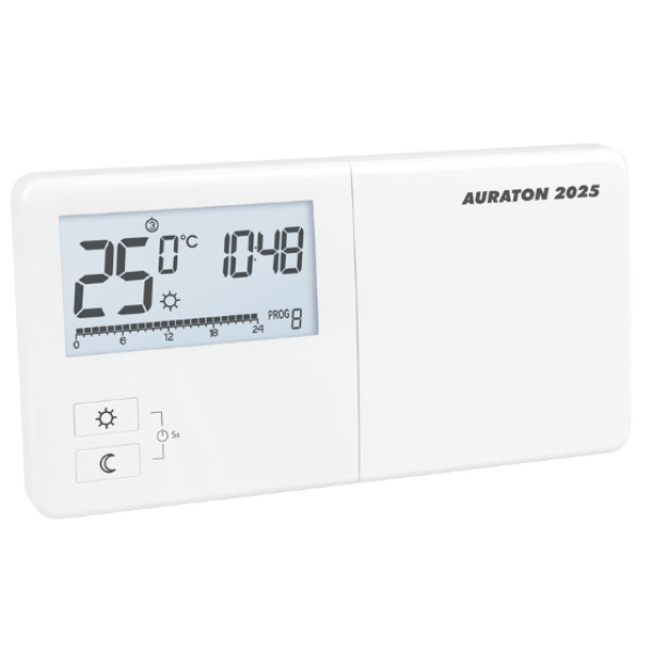AURATON 2025 je programski regulator sobne temperature jednostavan za programiranje. Ima 4 nezavisne, lako podesive temperature - udobna, ekonomična, odmor i protiv zamrzavanja. Ima tri fabrički podešena programa i sedam korisnički-promenljivih.
