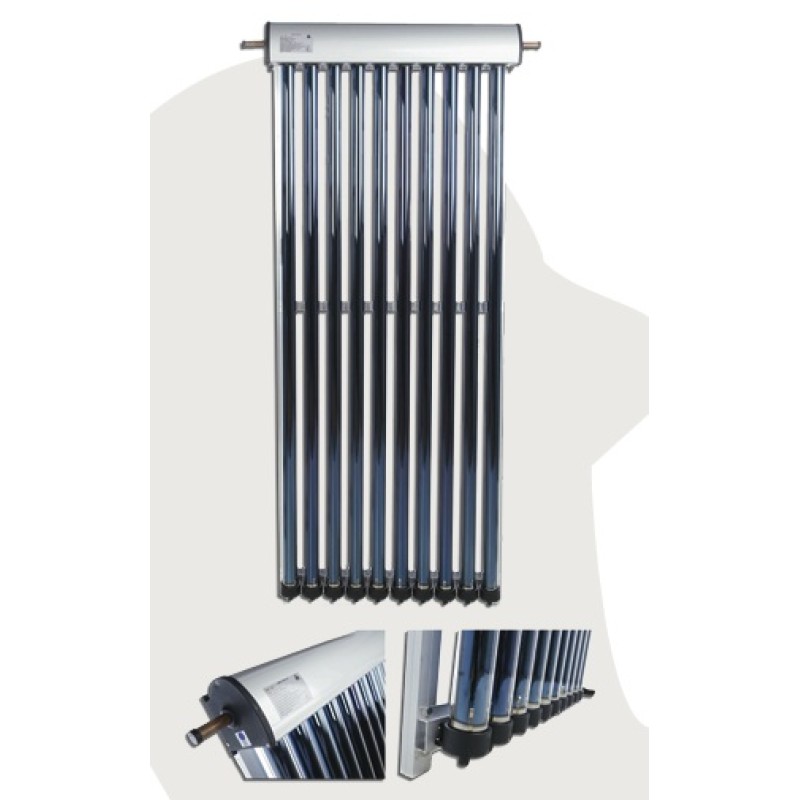 Solarni kolektori se sastoje od 10 vakumiranih cevi sa visoko efikasnim selektivnim premazom. Staklena cev u unutrašnjosti ima PVD (fizicki depozit pare) selektivni premaz koji povećava apsorpciju cevi. U unutrašnjosti staklene cevi se nalaze bakarne cevi tipa U. Ove cevi su zavarene na dodatni apsorber. Apsorber ima svoj sopstveni patentirani selektivni premaz koji povećava prenos toplote na bakarne cevi i slanje toplote ka tečnosti za prenos toplote. Bakarne cevi tipa U spajaju dve odvojene grane koje su pažljivo smeštene u kutiju od eloksiranog aluminijuma i izolovane kamenom vunom velike gustine.