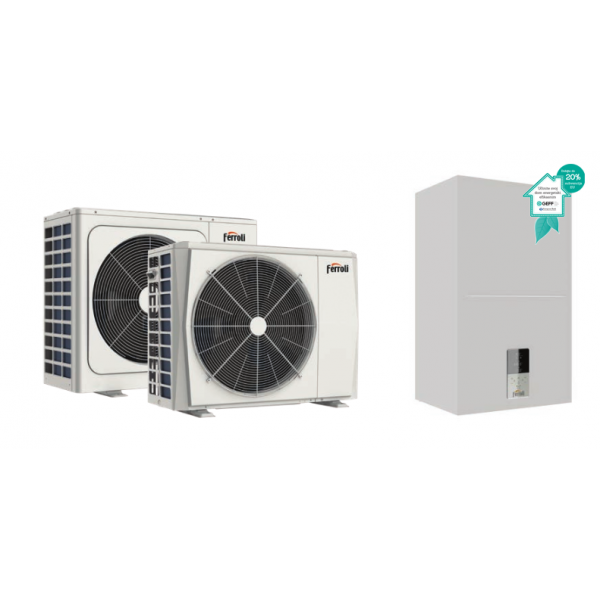 Nova gama toplotnih pumpi sa punim inverterskim split sistemom i ekološkim rashladnim sredstvom R32. Sastoji od spoljne jedinice koja sadrži najvažnije elemente rashladnog kruga, od kompresora do izmenjivača toplote sa vazdušne strane, koji se povezuje sa cevima rashladnog sredstva do unutrašnje jedinice. Unutrašnja jedinica, s druge strane, sadrži glavne komponente vodenog kruga generatora toplote, sa predinstaliranim komponentama, kao što su visokoefikasna cirkulaciona pumpa i ekspanziona posuda, kako bi se omogućila sigurna, brza i praktična instalacija. Standardno se isporučuje sa električnim grejačem od 3 kV za monofazne modele i 6kV za trofazne modele. Instaliranje split sistema takođe nudi neospornu prednost izbegavanja problema smrzavanja, čak i na najnižim temperaturama (do -25 ° C) čak i u odsustvu električne energije. Sve jedinice zadovoljavaju najekstremnije zimske/letnje potrebe za grejanjem/hlađenjem sa kapacitetom za proizvodnju tople vode do 65 ° C, što ih čini idealnim za praktično sve sisteme grejanja, bez obzira da li su panelni, sa ventilator konvektorima ili radijatorima, uključujući proizvodnju potrošne tople vode (PTV) preko spoljašnjeg bojlera. Ferrolijev novi dizajn sa punim inverterom koristi DC invertersku modulaciju na tri glavne komponente mašine koje troše energiju, tj. kompresor, ventilator i cirkulacionu pumpu. Ovo omogućava modulaciju distribuiranog kapaciteta finim praćenjem toplotnog opterećenja, omogućavajući tako veoma visoku energetsku efikasnost i važnu uštedu za krajnjeg korisnika. Na taj način, Ferrolijev dizajn sa punim inverterom smanjuje udarnu struju, izbegavajući fluktuacije električne mreže, čime se poboljšava radni vek komponenti. Nivoi buke su među najnižim u na tržištu, a može se koristiti ili kao samostalan ili kao uređaj integrisan sa drugim izvorima toplote. Sve jedinice se isporučuju sa temperaturnom sondom za bojler PTV i sondom za temperaturu spoljnog vazduha (prethodno montiranu na spoljnoj jedinici).