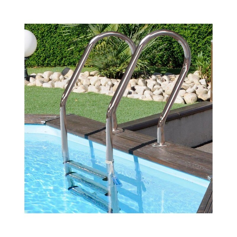 - oprema : plava PVC obloga sa anti UV tretmanom, drvena konstrukcija ,filter set od 10m3/h, + 130kg peska , drvene spoljne stepenice, unutrasnje stepenice od ne rdjajuceg celika, stitnici za dno i zidove bazena , 2 skimera , prikljucna creva , zastitni pokrivac za dno.