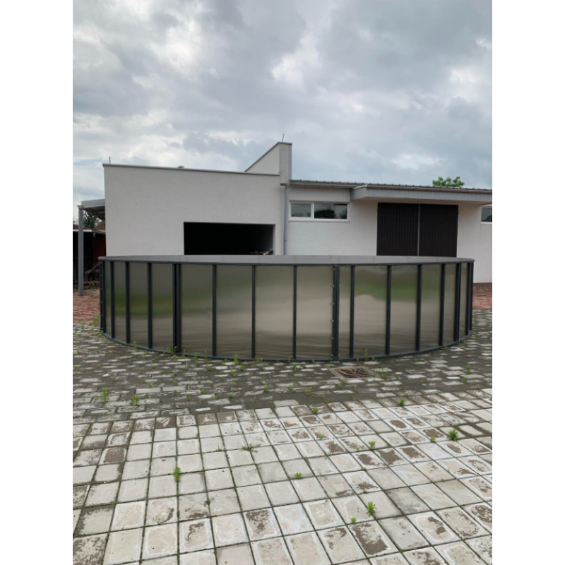 Konstrukcija je projektovana tako da omogućava lako nivelisanje, čvrstoću i stabilnost celog bazenskog sistema. Površina je glatka, bez oštrih ivica, dok matirani paneli pružaju dodatnu privatnost i estetski efekat.