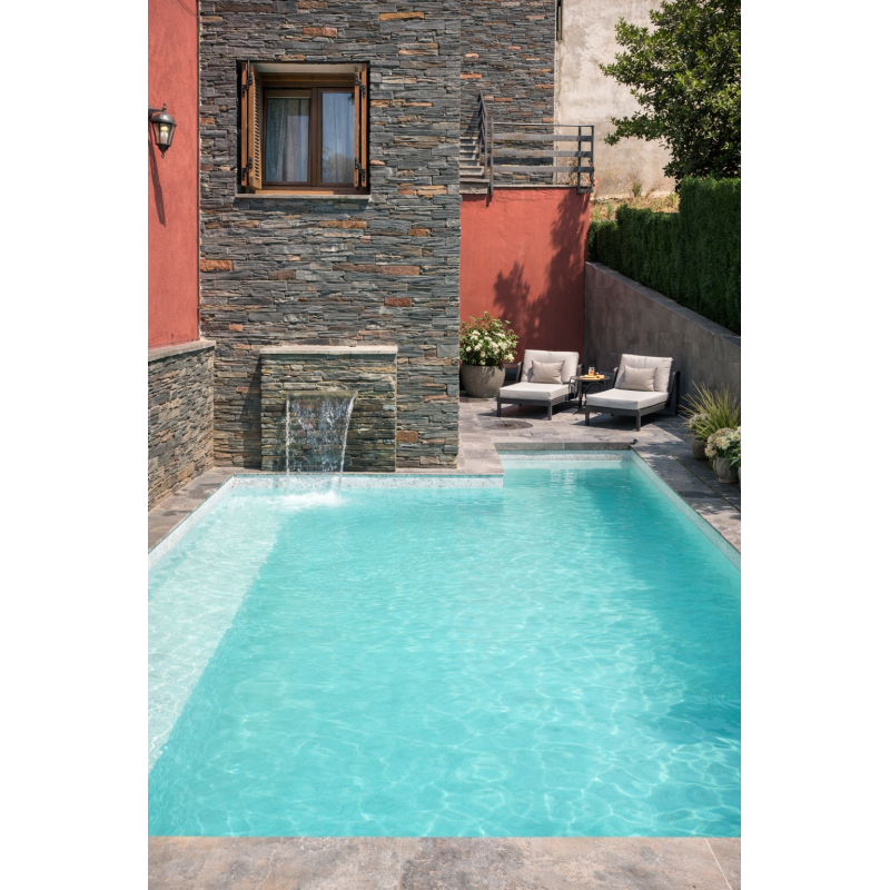Dekor Glacier donosi prirodan, kamenasti izgled bazena. Kombinacija sivih tonova reflektuje svetlost i daje efekat čiste morske vode — idealno za moderne vile, spa centre i prirodno uređena dvorišta.