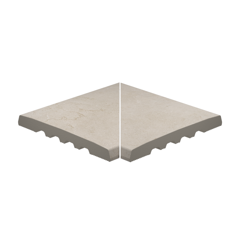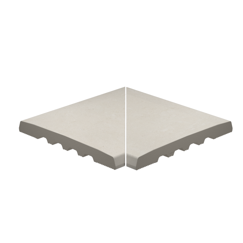 Izrađena je od visokootporne keramike, pogodna za upotrebu u spoljašnjim i unutrašnjim bazenima. Pruža visoku mehaničku čvrstoću, otpornost na hemikalije, UV zračenje i habanje, uz protivkliznu površinu za dodatnu sigurnost. Ugaoni dizajn omogućava nesmetan protok vode kroz prelivni kanal čak i na spojevima, čime se zadržava puna funkcionalnost i estetika bazena.