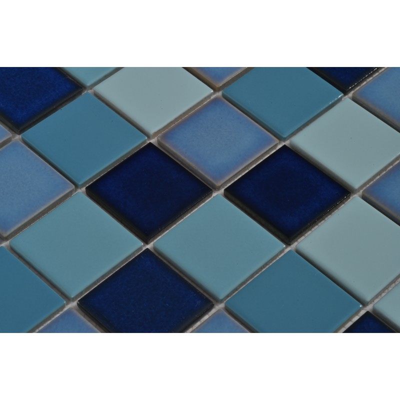 Stakleni mozaik Maldivi Mix u kombinaciji plave boje koje odaju utisak presijavanja kao da ste na moru.