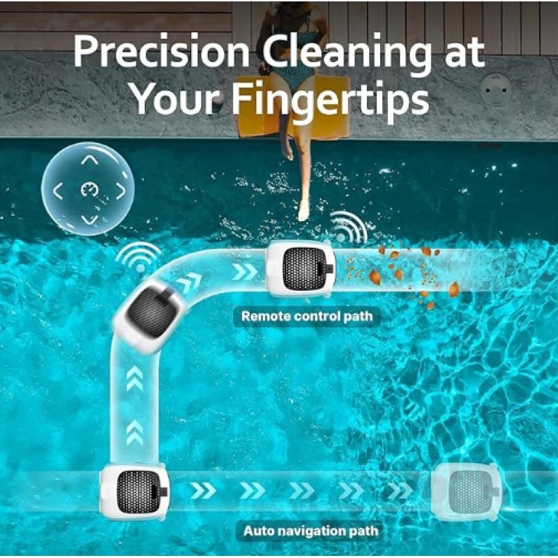 Robot za čišćenje vodene površine može automatski da se upravlja putem ultrazvučne radar navigacije, ali i manuelno putem daljinskog upravljača. Daljinskim upravljačem možete podešavati pravac kretanja, brzinu i svetlosne efekte koji pokazuju trenutni režim rada, pravac i nivo baterije. Ambijentalna svetla sa obe strane robota takođe pružaju vizuelne informacije o operativnom stanju.
