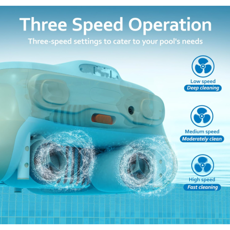 Tri snažna motora rade efikasno kako bi obezbedili odlične performanse. Dvojni motori pokreću robota napred, dok motor sa valjkastim četkama pruža dodatnu snagu za usisavanje. Robot je opremljen prilagođenim 35W motorom koji je otporan na so i hlor, a koji pokreće propelerski sistem. Takođe, dizajn sa zaštitom od uvijanja i mogućnošću skidanja dodatno poboljšava efikasnost čišćenja.