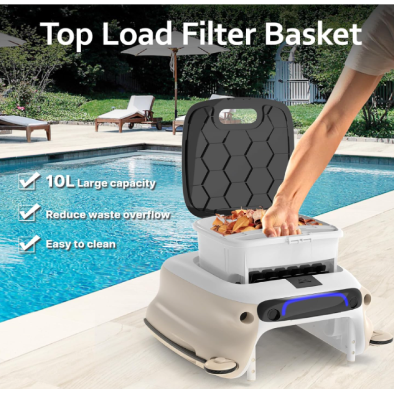 Filter korpa smeštena na vrhu ima kapacitet od 10 litara što omogućava lakše sakupljanje otpada. Sa filter mrežicom od 180 μm, košara je veća od klasičnih mreža za skimer bazena, što omogućava skupljanje većih količina nečistoća. Dodatno, dizajn sa zaštitnim baffle sistemom sprečava bežanje malih objekata kao što su kosa, insekti, polen, i slično.