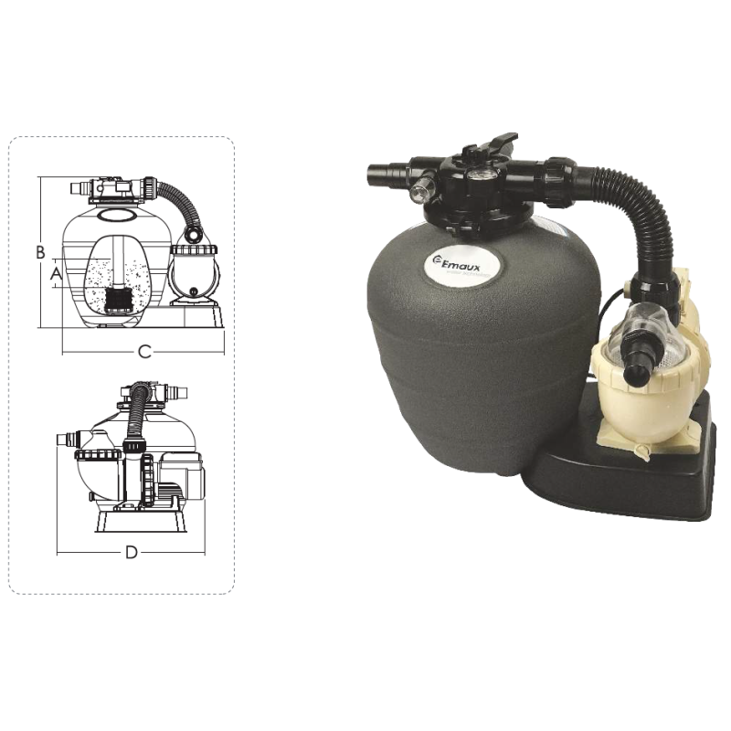 Filter setovi Emaux namenjeni su za brzu i laku instalaciju prevashodno za nadzemne montazne bazene. Filter setovi se isporučuju sa filterom, pumpom i četvoropoložajnim ventilom.