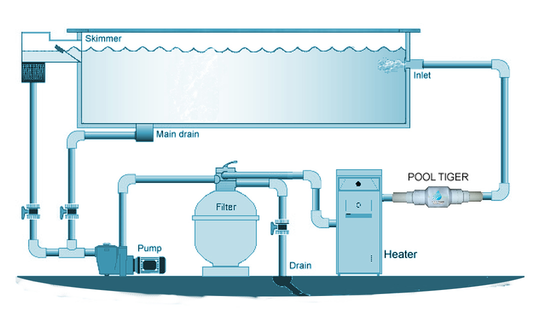 Pool Tiger funkcioniše isključivo pomoću protoka vode koji pokreće bazenska pumpa. Aktivira se pri minimalnom protoku od 8 GPM (galona po minutu). U suštini, uređaj pretvara energiju pumpe u niz korisnih efekata.