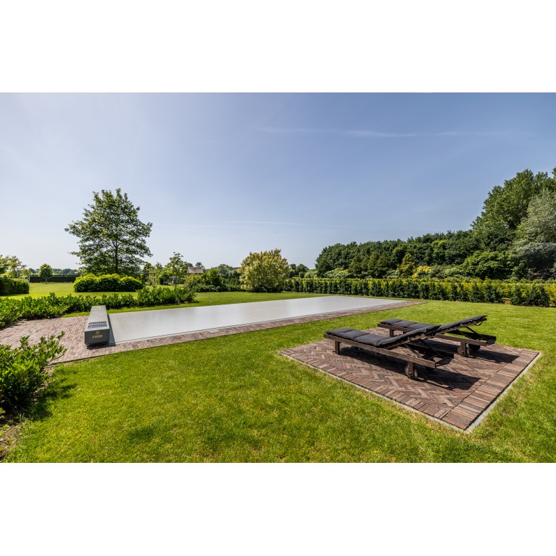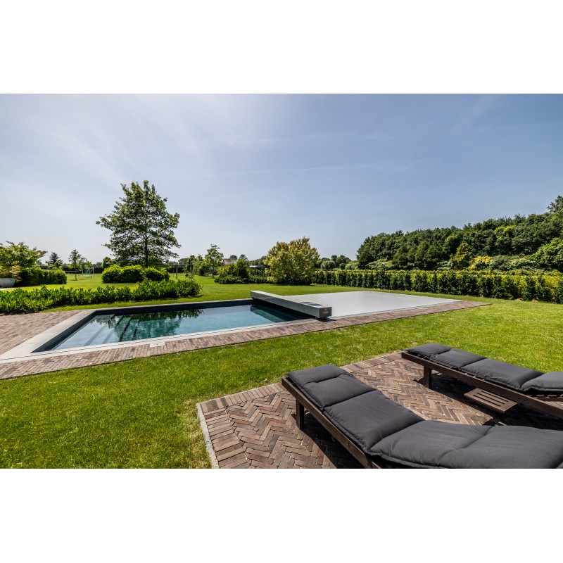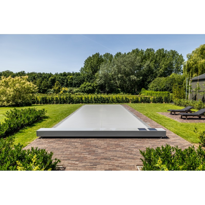 Visoko otporna, zategnuta membrana je dizajnirana da obezbedi maksimalnu sigurnost, uz smanjenje rizika od oštećenja. Poklopac je opremljen ultra-ravnom kliznom šinom koja ga postepeno vodi i zaptiva kako klizi preko bazena. Ovaj sistem se automatski zapečati, eliminišući svaki rizik od curenja ili pogrešnog postavljanja prekrivke, što znači da možete biti sigurni da će vaš bazen biti potpuno zaštićen.