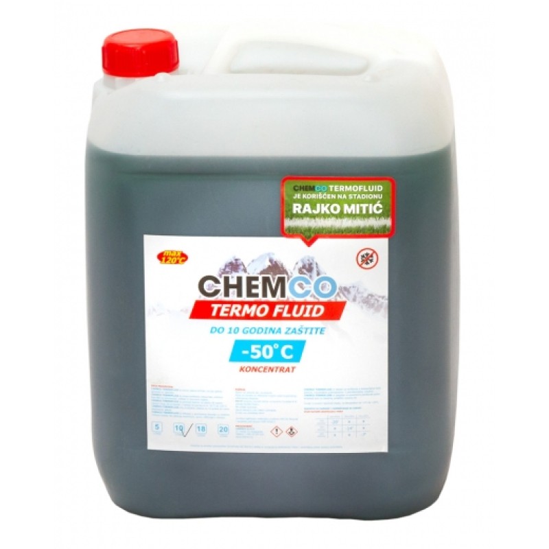 Chemco antifriz namenjen je rashladnim sistemima i sistemima etažnog grejanja na bazi monoetilen glikola. Rok trajanja 10 godina. Chemco Termo Fluid je tečnost spremna za upotrebu tamno zelene boje na bazi propilen glikola. Chemco Termo Fluid je idealan za korišćenje u instalacijama kuća, stanova, industrijskih postrojenja i u petrohemijskoj industriji. Chemco Termo Fluid je pogodan za preventivno korišćenje protiv stvaranja leda na stazama, pešačkim zonama itd. Efikasan je u sprečavanju korozije na različitim vrstama metala. Ne oštećuje aluminijum, gume, klingerite i dihtunge u sistemu. Potpuno bezbedan u svim mogućim izvedbama.