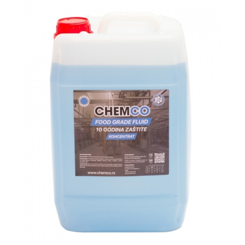 Food grade je tečnost plave boje na bazi mono propilen glikola. Ekološka i visoko kvalitetna neotrovna tečnost namenjena za klasične solarne sisteme i sisteme koji se koriste u prehrambenoj industriji. Štiti sisteme (fabrike sokova, pivare, mlekare, mesna industrija) od smrzavanja i neguje sistem. Sprečava stvaranje kamenca i pojavu pene unutar sistema. Ne oštećuje gumene dihtunge. Razblažen u odnosu 50%-50% se može koristiti od -40 do +150C.