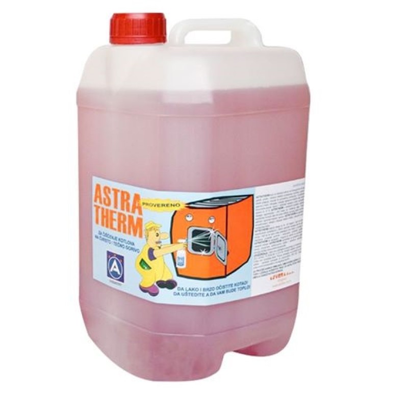 ASTRATHERM je apsolutno nezapaljiva tečnost za čišćenje kotlova na čvrsta goriva - ogrevno drvo, ugalj, pelet, brikete i lož ulja. Jednako uspešno se koristi i za detaljno čišćenje roštilja, pekarskih peći i pećnica-rerni od nerđajućeg čelika.