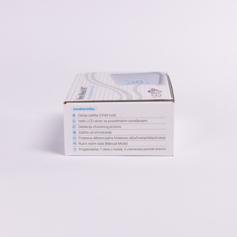 Termostat omogućava programiranje po danima u nedelji, sa mogućnošću podešavanja do četiri vremenska perioda dnevno. Za svaki period može se definisati željena temperatura, čime se grejanje prilagođava dnevnom ritmu korisnika.