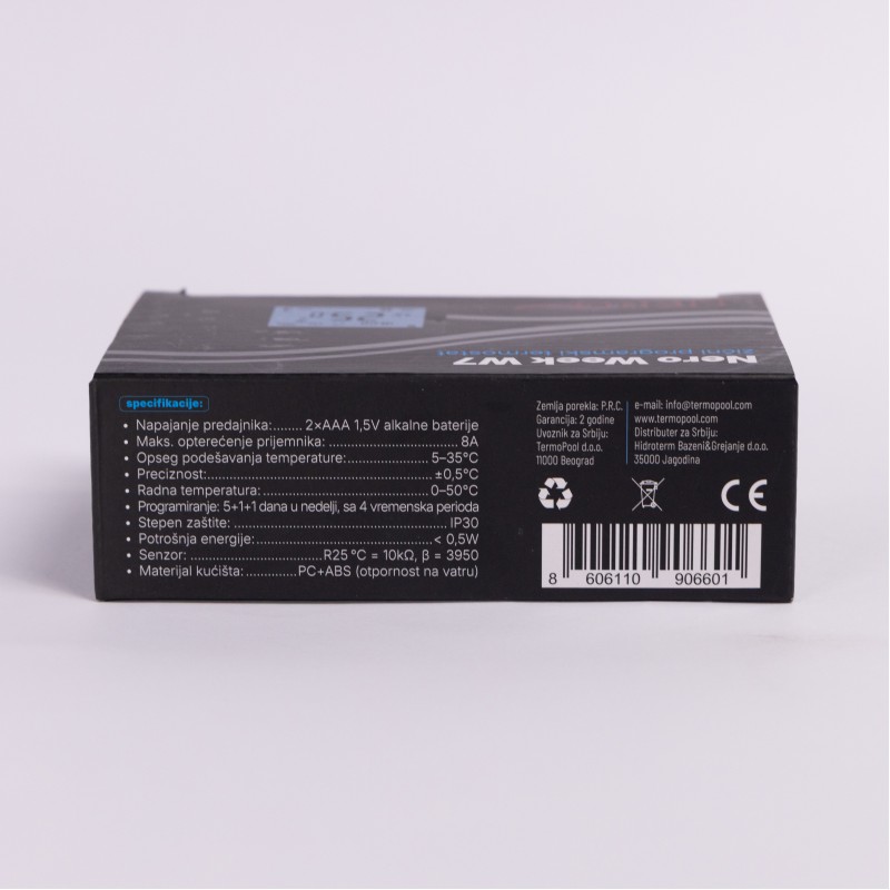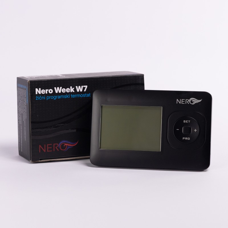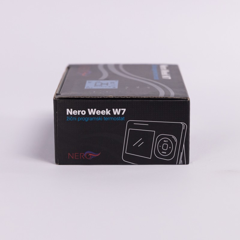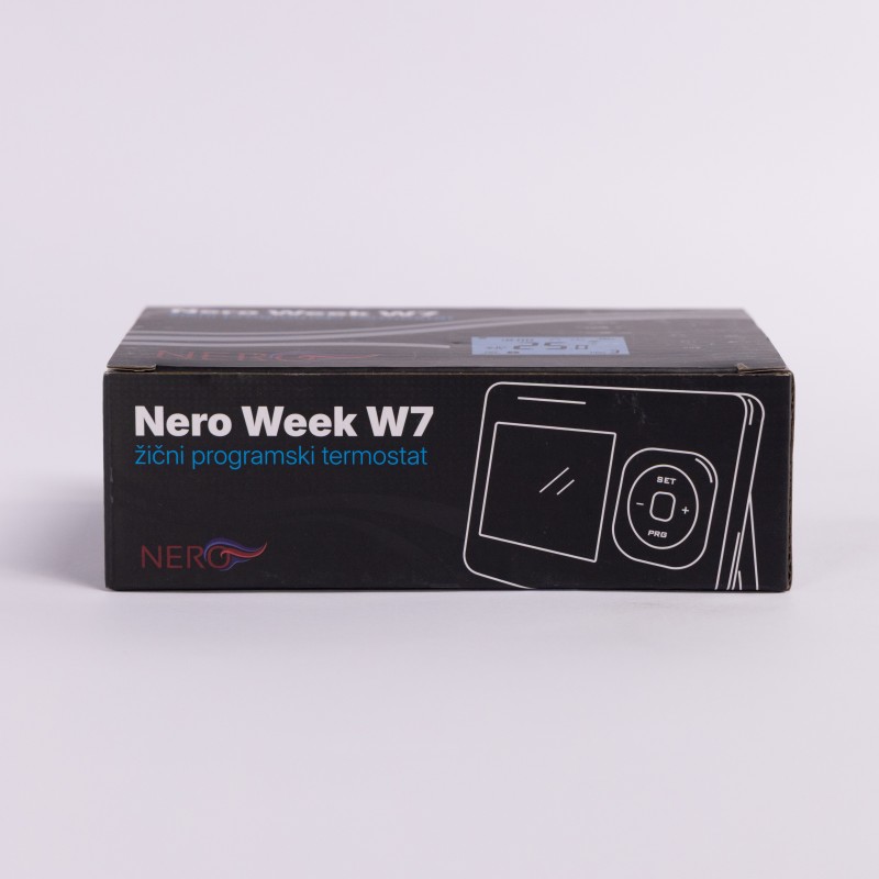 Žični sobni termostat NERO Week W7 je digitalni programabilni termostat namenjen preciznoj regulaciji sistema grejanja u stambenim i poslovnim objektima. Omogućava korisniku da unapred definiše temperaturne režime po danima u nedelji, čime se postiže visok nivo komfora i racionalna potrošnja energije.