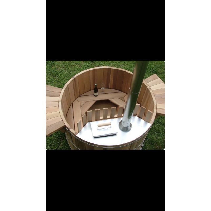 U kompletu dobijate sve što vam je potrebno za potpuni užitak: prohromsku peć na drva, klupu, stepenice i poklopac.