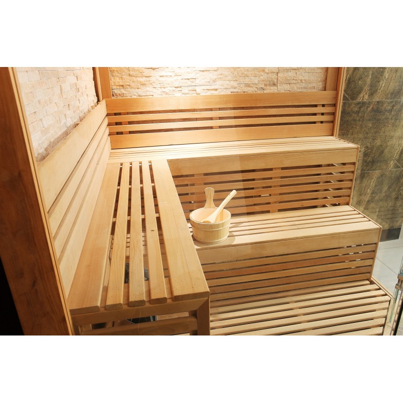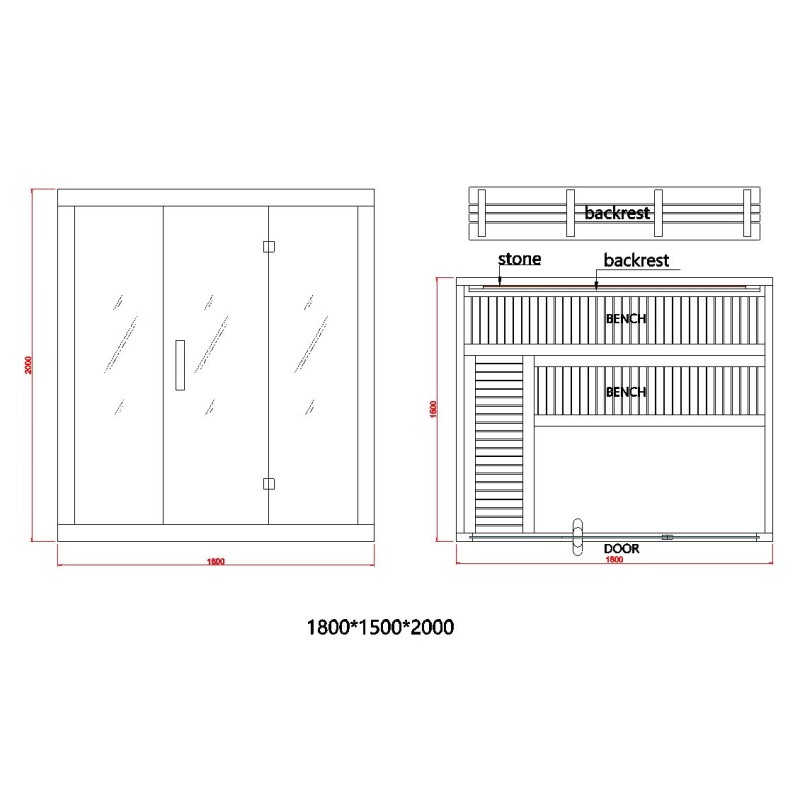 Uživajte u vrhunskom spa doživljaju kod kuće sa sauna sobom Nero, izrađenom od kvalitetnog kanadskog Hemlock drveta. Ovaj model je dizajniran za 4 osobe, sa dimenzijama 1800 x 1500 x 2000 mm, težinom 120 kg, i snažnom peći od 4,5 kW (220V / 380V) koja omogućava brzo i ravnomerno zagrevanje prostora.