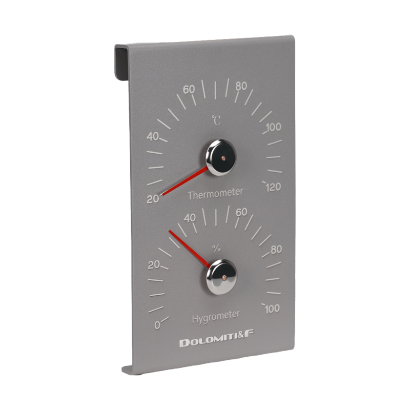 Termohigrometar DOTH25001 je praktičan i pouzdan uređaj koji omogućava kontrolu temperature i vlažnosti vazduha u sauni. Izrađen je od aluminijuma, što garantuje dugotrajnost i otpornost na visoke temperature i vlagu.